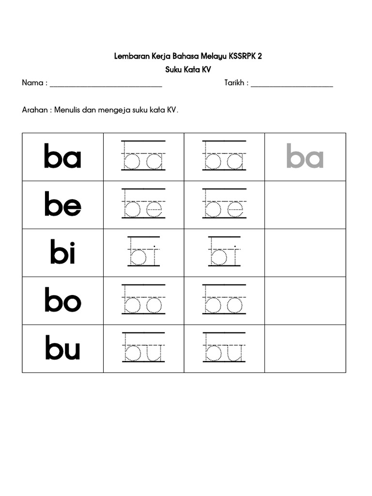 Lembaran Kerja Suku Kata Kvkv Siap Pdf